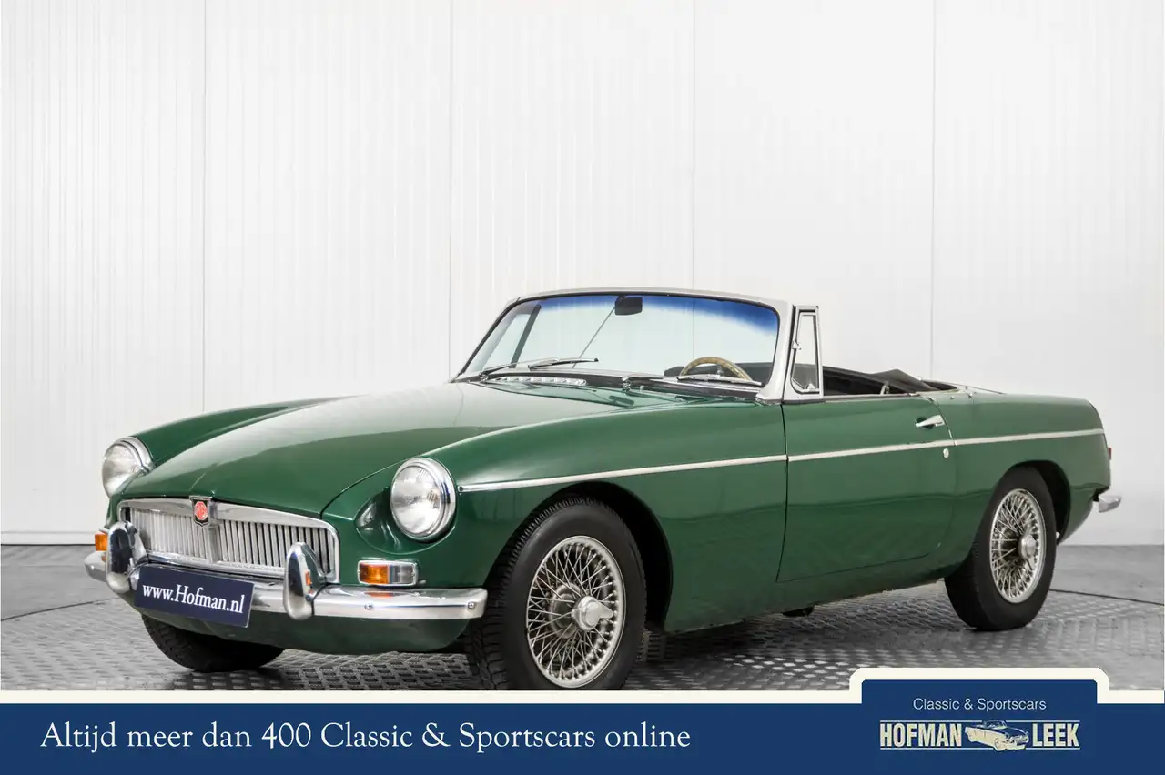 MGB 1800 met overdrive en spaakwielen, roestvrij stalen uitlaat, voorzien van het mooie stalen dashbord.. De eerste MGB (Morris Garage B) werd geïntroduceerd in 1962 als opvolger van de MGA. Het was een van de meest populaire Britse sportwagens van zijn tijd en is tot op de dag van vandaag een icoon van de klassieke Britse autowereld. Topsnelheid: Ca. 170 km/u. De MGB had een moderne, stijve monocoque constructie, in tegenstelling tot de body-on-frame constructie van de MGA. Goede rijeigenschappen dankzij onafhankelijke voorwielophanging en een relatief lage wagengewicht van 920 kg.